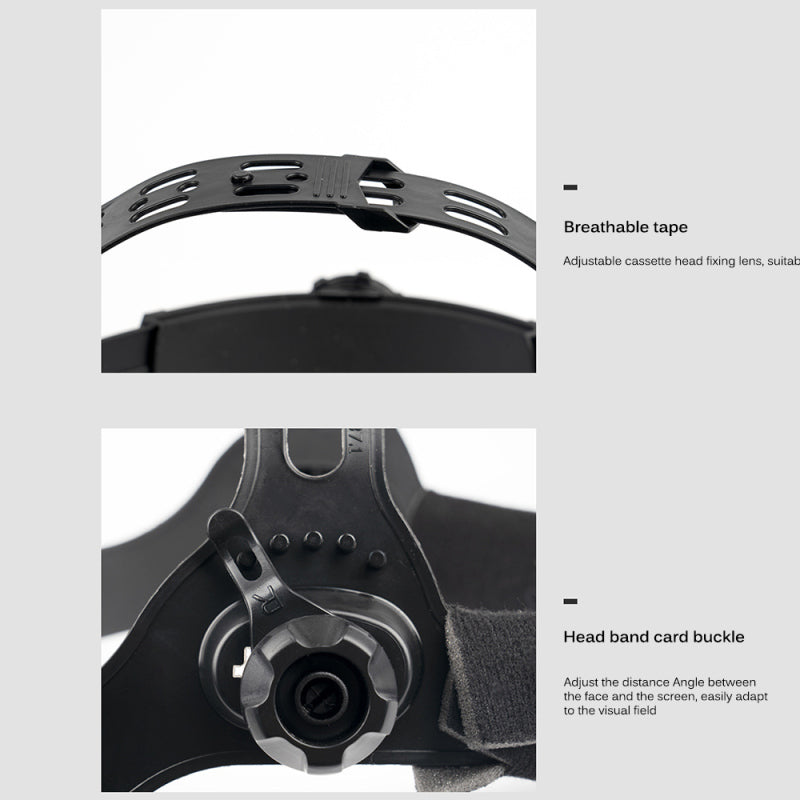 A máscara de soldagem pode ser virada para cima e para baixo, e a tensão da faixa de cabeça pode ser ajustada durante o uso.