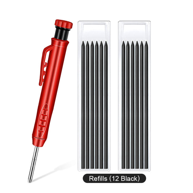 -1. Fabricante do furo profundo: o tempo de design do lápis do carpinteiro do furo profundo é 45mm de extensão e ponta do nariz da agulha, alcançando áreas difíceis de alcançar, enquanto outros sinais do carpinteiro não podem. É apropriado para furos ou outros sinais de área apertada.