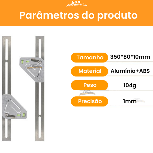 Régua Triangular Flexível: A régua triangular acima da escala pode ser movida e ajustada com flexibilidade , ela também pode ser girada para qualquer ângulo que você precisar e depois fixada.