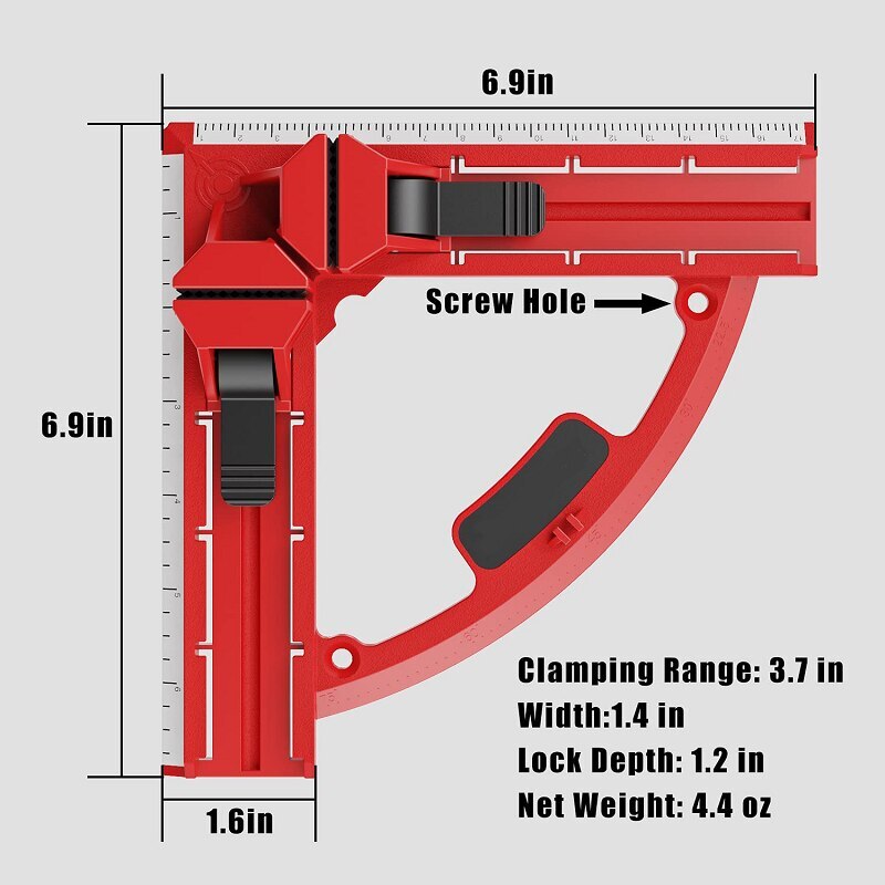 【Trava de fixação rápida】: Com a trava de fixação rápida integrada na braçadeira de ângulo ajustável, você gastará menos tempo fazendo o trabalho. Os gabaritos de canto para madeira são a escolha ideal para iniciantes ou profissionais. Você se beneficiará muito ao trabalhar em um porta-retratos ou gabinete.