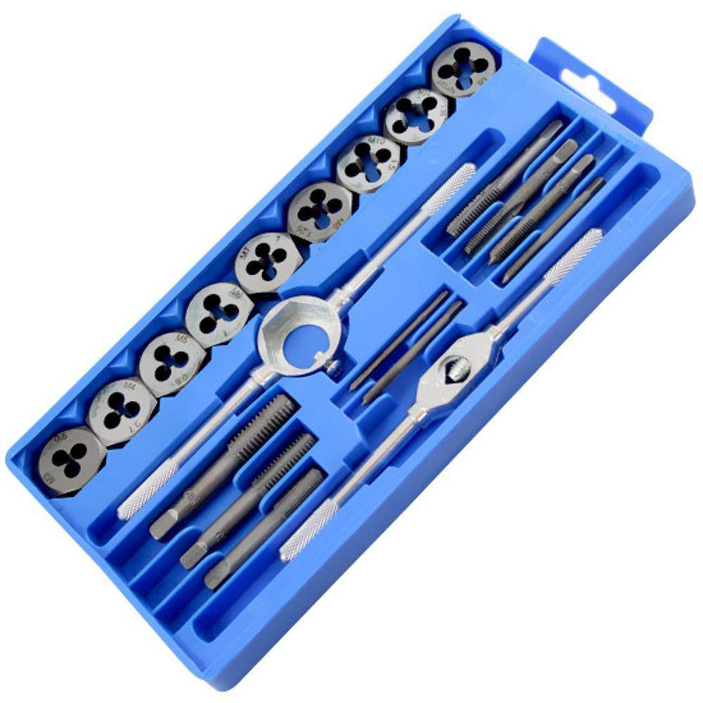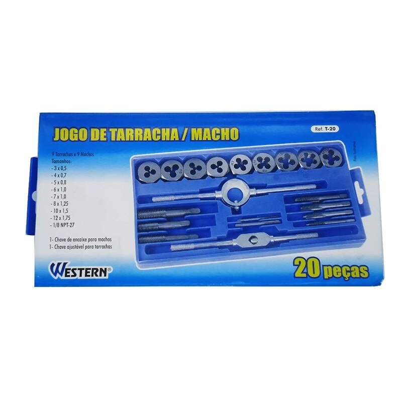 O Jogo de Tarraxa e macho 20 peças é indicado para abrir rosca em Alumínio, Ferro, Metais em Geral, Madeira, Plástico, Resinas e entre outros.
