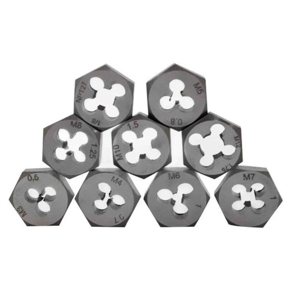 - 9 Tarrachas : 3x0.5, 4x0.7, 5x0.8, 6x1,0, 7x1,0, 8x1.25, 10x1.5 12x1.75, 1/8 NPT-27