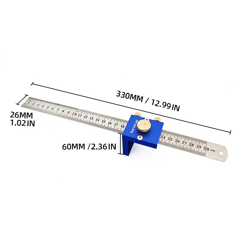 Com uma régua de aço de escala dupla de 30cm/12in, que é fácil de usar.
