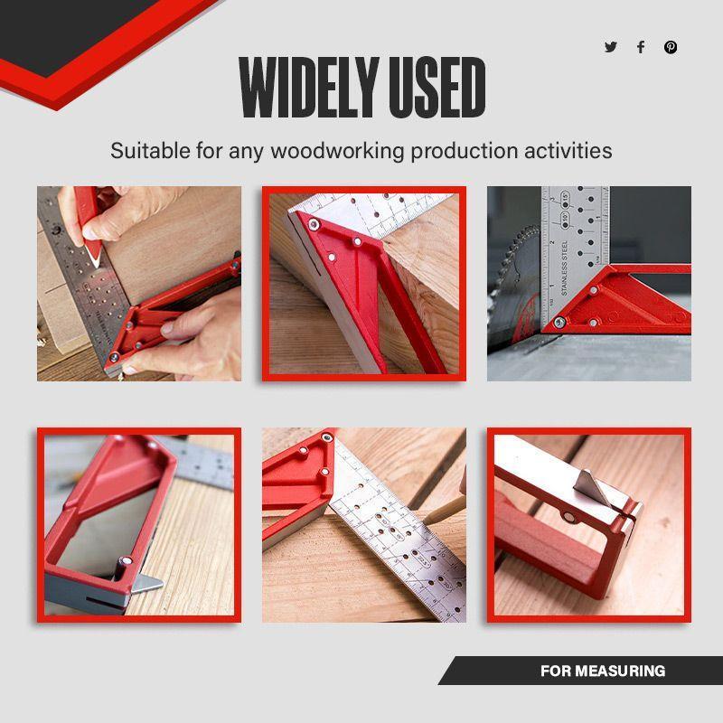 Fornece a medida exata do ângulo e a linha paralela que marcam para trabalhar madeira.