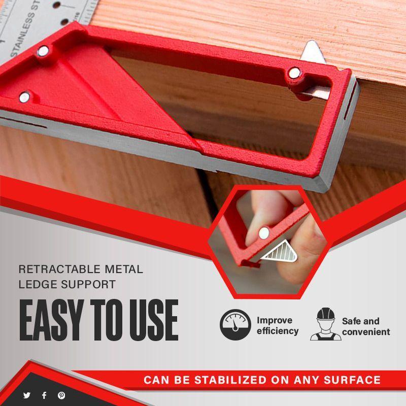 UM único Borda de metal retrátil suporteÉ extremamente útil para estabilizar o quadrado em qualquer superfície para Garantir resultados precisos e verdadeiros.